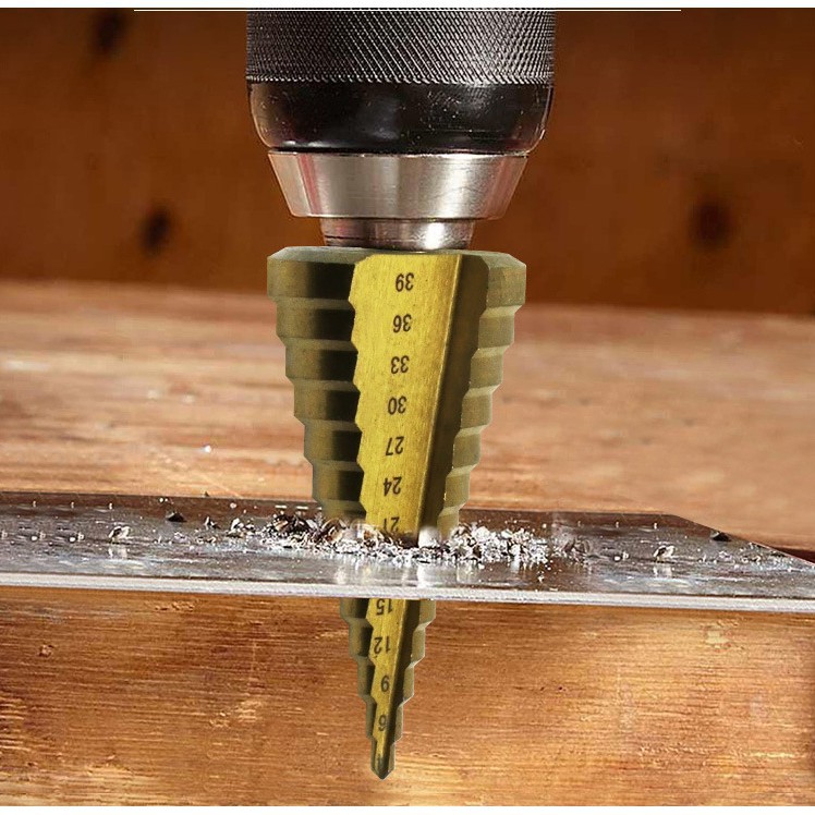 - Mũi khoan tháp hay còn gọi là mũi khoan chóp, mũi khoan nón là loại mũi khoan có nhiều bước khoan khác nhau, 1 mũi khoan được nhiều đường kính, rất tiện dụng.