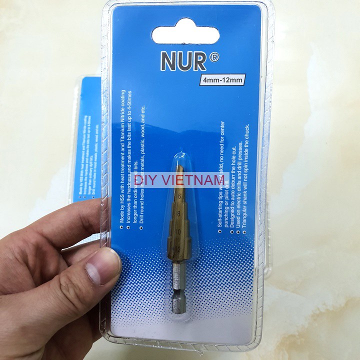 Dụng cụ và thiết bị tiện ích > Dụng cụ cầm tay > Máy khoan, máy vặn vít & phụ kiện > Mũi khoan tháp TITANIUM chuôi lục giác NUR cao cấp (tùy chọn kích thước) (Mũi khoét tháp)