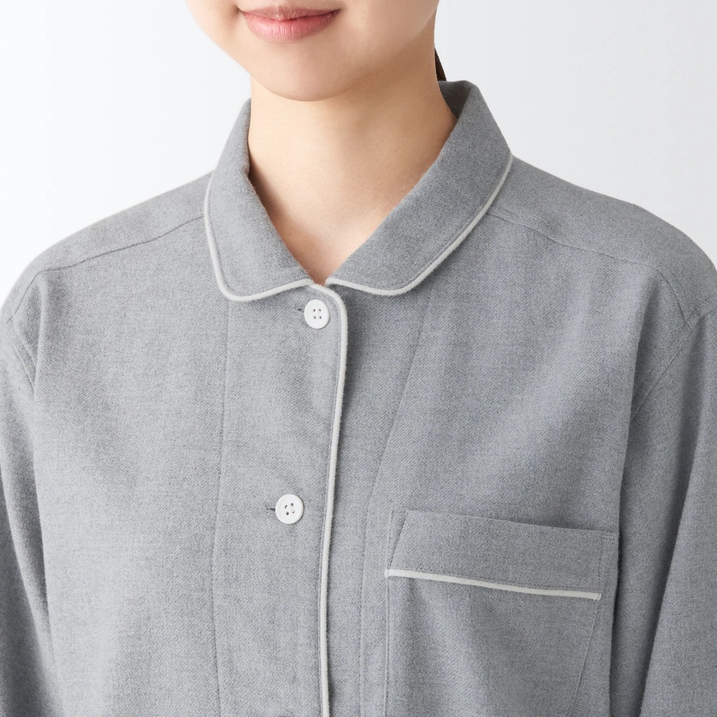 Muji Bộ Pyjama Không Đường May Sườn Vải Flannel Sản phẩm có thiết kế không đường may sườn và sử dụng chất liệu ấm áp. Thành phần bông sử dụng cotton hữu cơ. THÂN: BÔNG100%, ĐÁP CỔ SAU: BÔNG100% ● Các sản phẩm có màu tối có thể bị phai màu trong lúc sử dụng do ma sát và khi xử lý lúc còn ướt. Giặt riêng. ● Do đặc tính của vật liệu này, xù lông và vón hạt có thể xảy ra do ma sát lúc sử dụng và giặt/giặt khô. Khi đó, hãy xử lý bằng cây cắt xù lông, v.v. ● △!Cảnh báo: Tránh xa lửa vì lửa có thể làm lớp lông trên bề mặt bốc cháy. ● Lông có thể dính vào các vật khác trong quá trình sử dụng. Hãy phủi bằng bàn chải hoặc loại bỏ bằng băng dính.