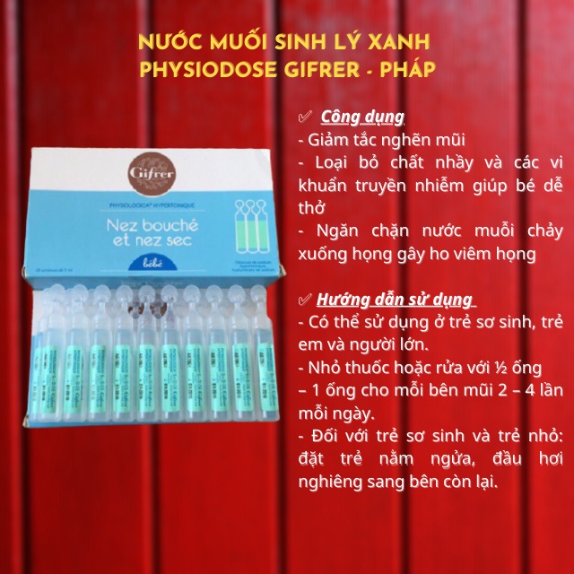 Giới thiệu Nước Muối Sinh Lý Gifrer - Physiodose Pháp Tép Hồng/ Xanh/ Vàng Cho Bé Từ Sơ Sinh