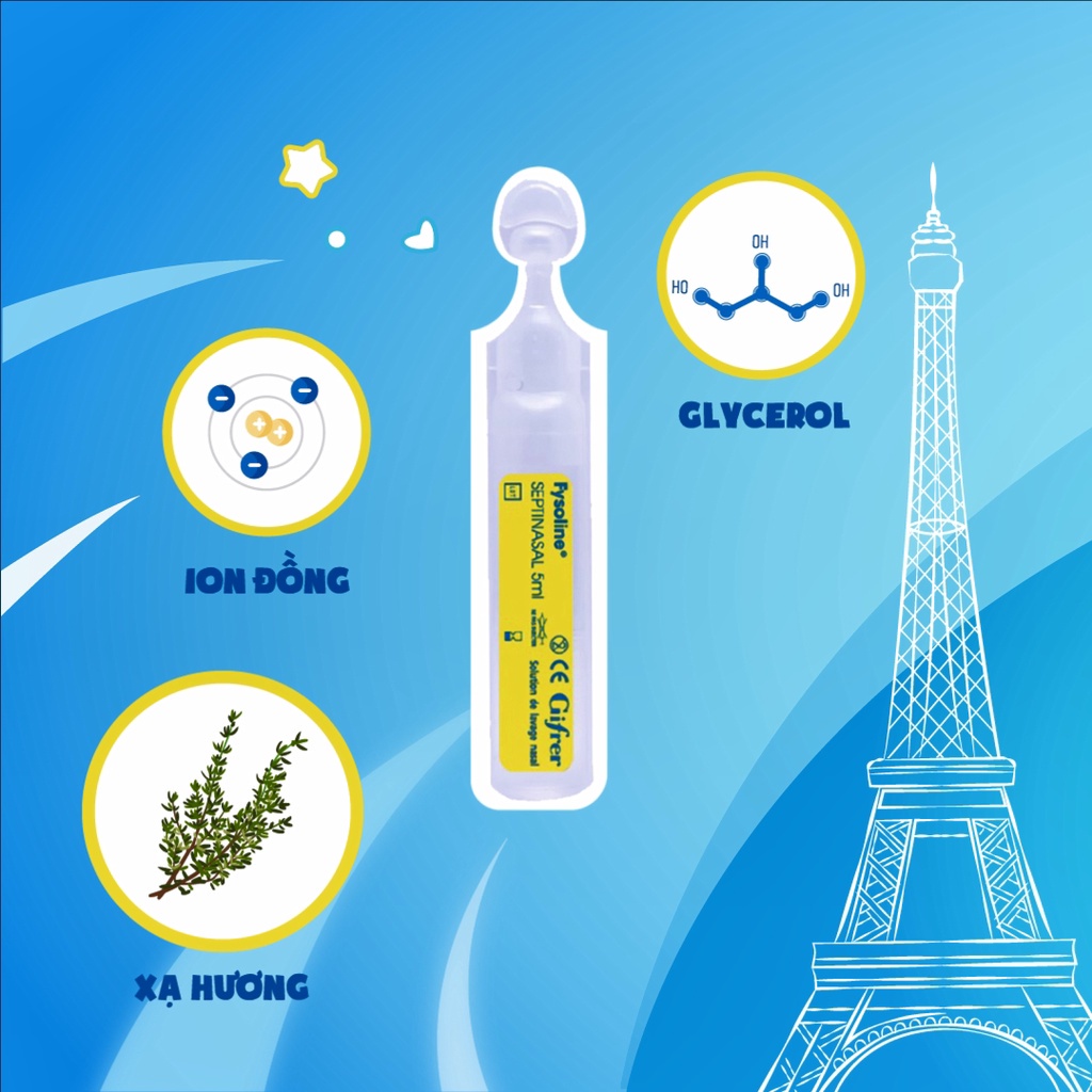Fysoline - Nước muối sinh lý Kháng khuẩn Pháp - Hỗ trợ giảm viêm mũi, sổ mũi - Đến từ thương hiệu Gifrer với 100 năm kinh nghiệm trong lĩnh vực chăm sóc mẹ và bé - Nhập khẩu hoàn toàn từ Pháp