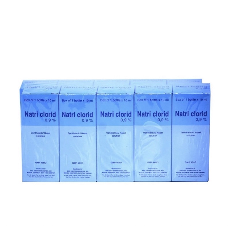 Nước muối sinh lý Natri clorid cũng giúp mẹ hút mũi dễ dàng hơn, lấy sạch chất dịch nhày cũng như bụi bẩn trong mũi bé. Thêm thông tin về Nước muối sinh lý Natri clorid 0, 9% : Nước muối sinh lý Natri clorid 0, 9% lành tính, dùng được cho mọi đối tượng, mọi lứa tuổi, hoàn toàn yên tâm khi dùng cho bé sơ sinh. Ngoài rửa mũi thì sản phẩm còn dùng để rửa mắt, vệ sinh mắt hàng ngày, đặc biệt là những người hay đi đường bị bụi bẩn. Thành phần gồm 90mg Natri Clorid và nước cất (vừa đủ 10ml). Dùng 1-3 lần mỗi ngày. Mỗi lần 1-3 giọt. Đóng kín nắp lọ ngay sau khi dùng. Chỉ sử dụng trong 15 ngày sau khi mở nắp. Đóng gói : Lốc 10 lọ