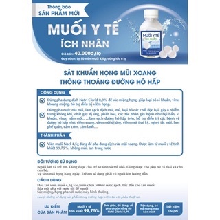 - Hòa tan 1 viên muối 4,5g vào bình chứa 500ml nước sạch, lắc đều cho tan muối. Rửa mũi pha nước sôi để nguội, súc miệng họng pha nước máy bình thường.