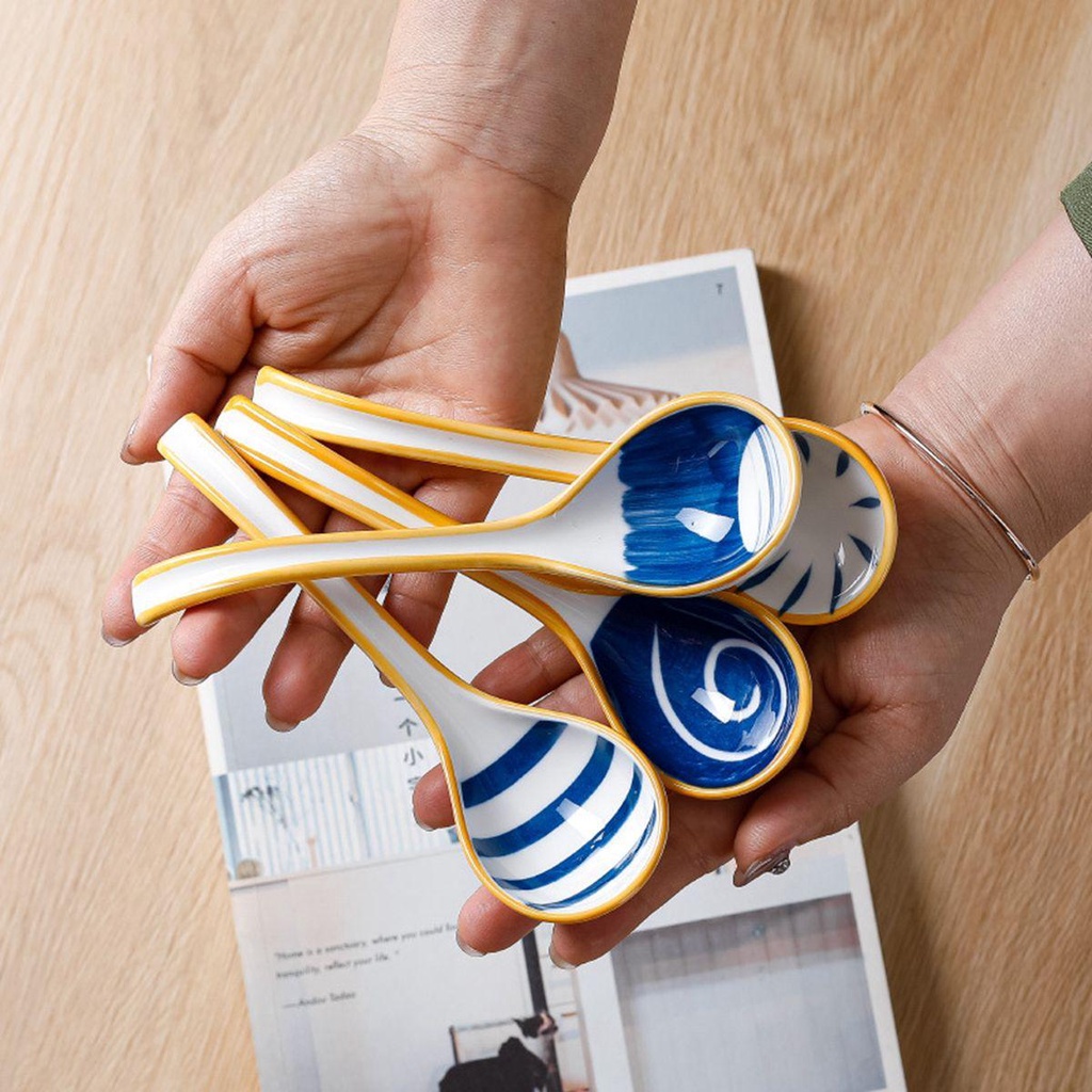 Thìa thực sự có thể xếp chồng lên nhau và dễ dàng làm sạch mà không có mùi hôi và lớp lót sau khi rửa. Thìa súp Nhà bếp Dụng cụ cắt kéo Bộ đồ ăn Bộ đồ ăn bằng gốm Phong cách Nhật Bản Ăn uống Trộn dây khuấy cho trẻ em Người lớn