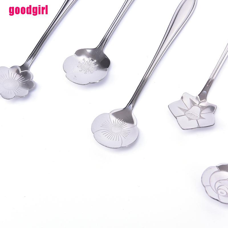 Muỗng cà phê bằng thép không gỉ màu bạc hình hoa múc đường/món tráng miệng