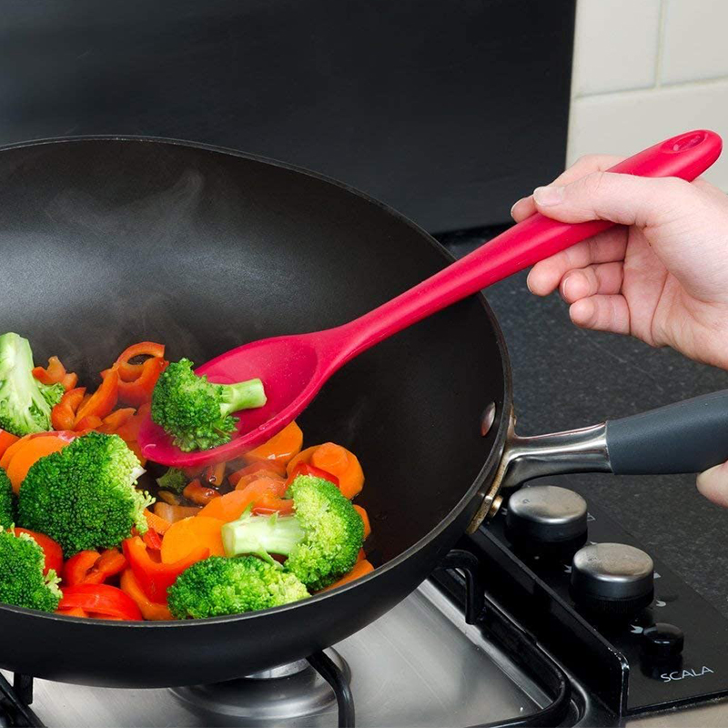 - 100% làm từ silicon cấp thực phẩm - Dành cho nhiệt độ: -40 ~ 230 độ C. - Thân thiện với môi trường, cảm giác cầm mềm, hoàn thiện không dính. - Không có mùi hoặc màu bất thường - Mềm, bền và trọng lượng nhẹ. - An toàn cho máy rửa bát, lò vi sóng, Lò nướng, An toàn cho Tủ đông. - Dễ dàng làm sạch và lấy đồ ăn. - Kích thước: 27,5 × 5,7 cm - Muỗng silicon của ANAEAT có kích thước tiêu chuẩn. Một dụng cụ cần thiết trong nhà bếp