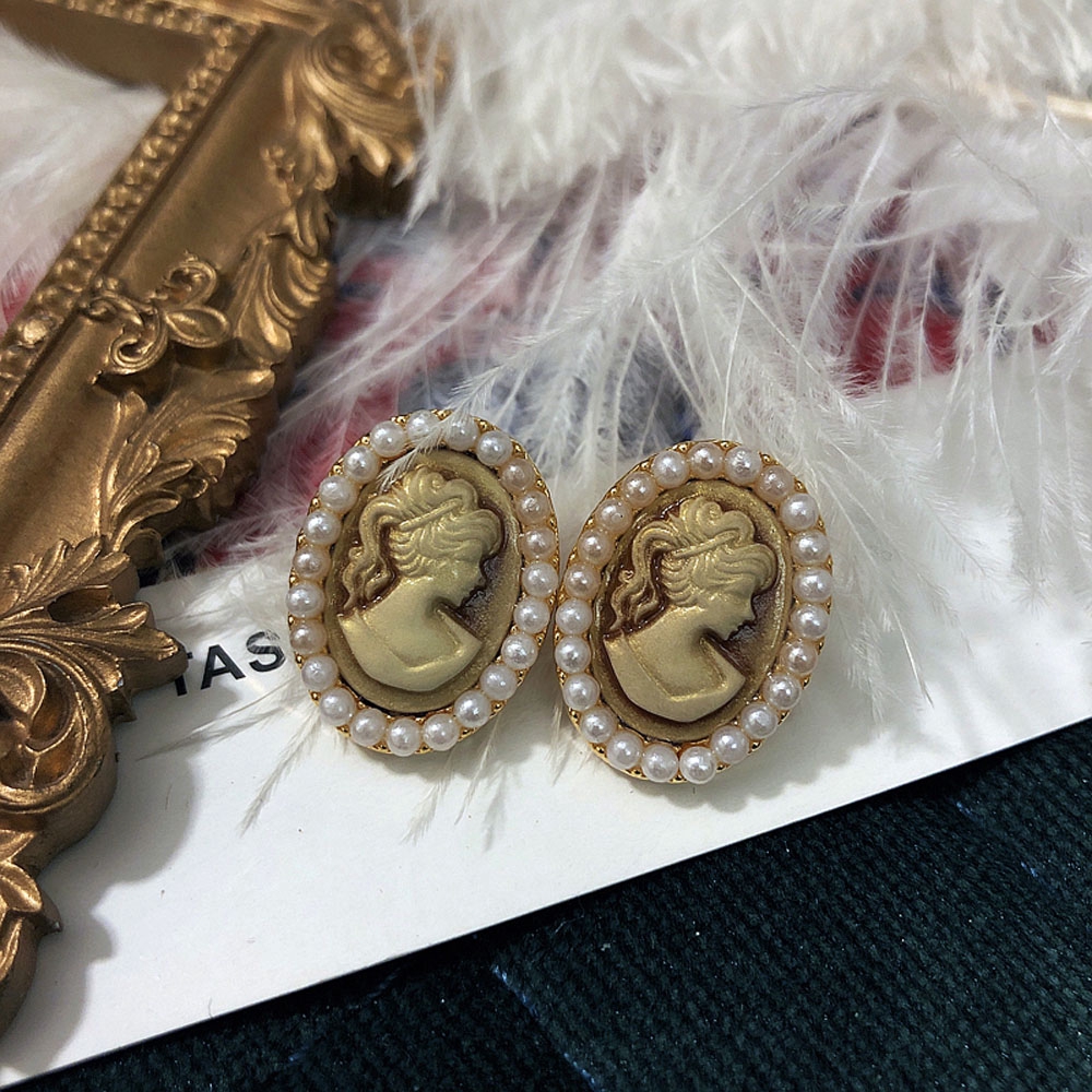 Giới thiệu MXGOODS Photo frame Oil Painting Geometric Portrait Queen Head Stud Earrings