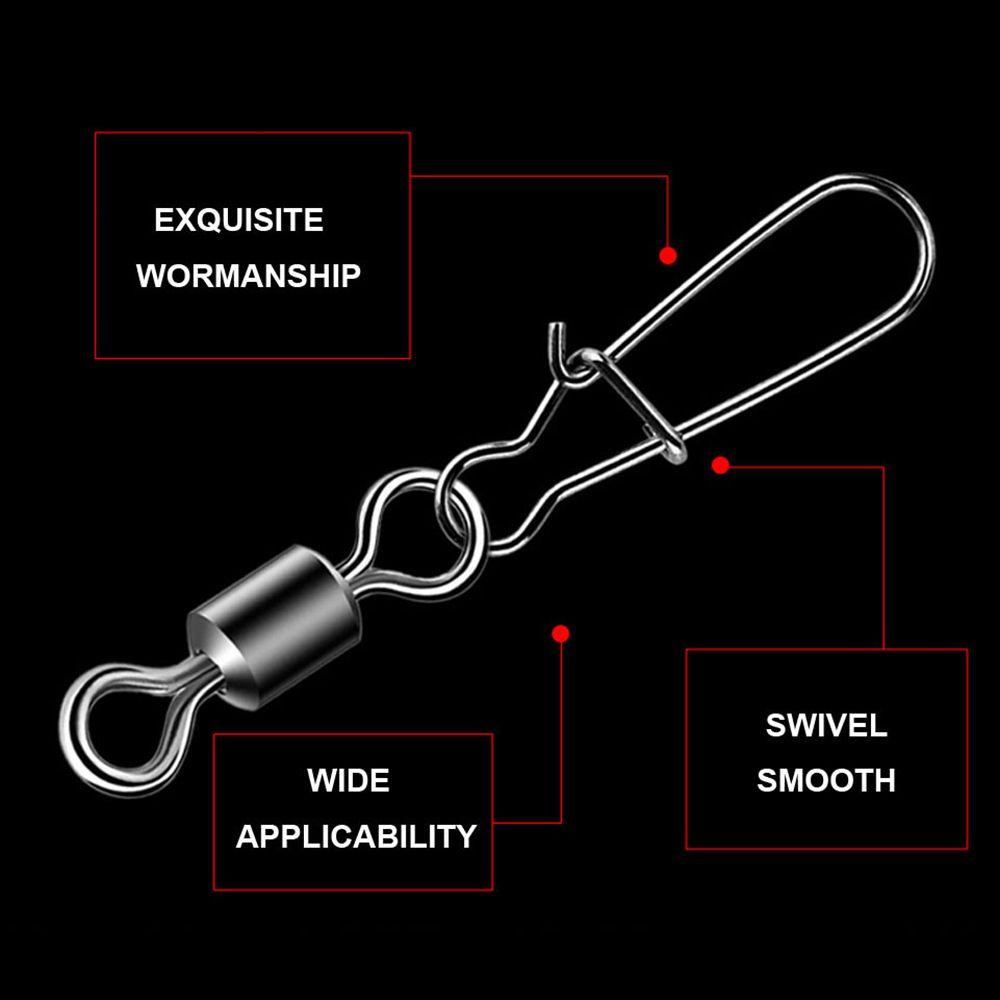 100 x Vòng bi câu cá Đầu nối câu cá Vòng rắn Xoay snap Cán Swive T hình dạng snap Thép không gỉ Bền nóng Di động Hữu ích