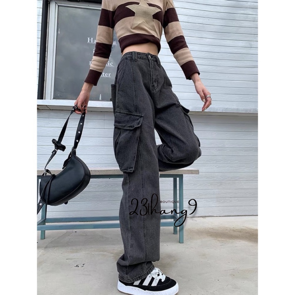 Quần jean túi hộp , quần jean ống rộng màu xám màu xanh chất vải bò dày dặn không phai màu đi chơi đường phố