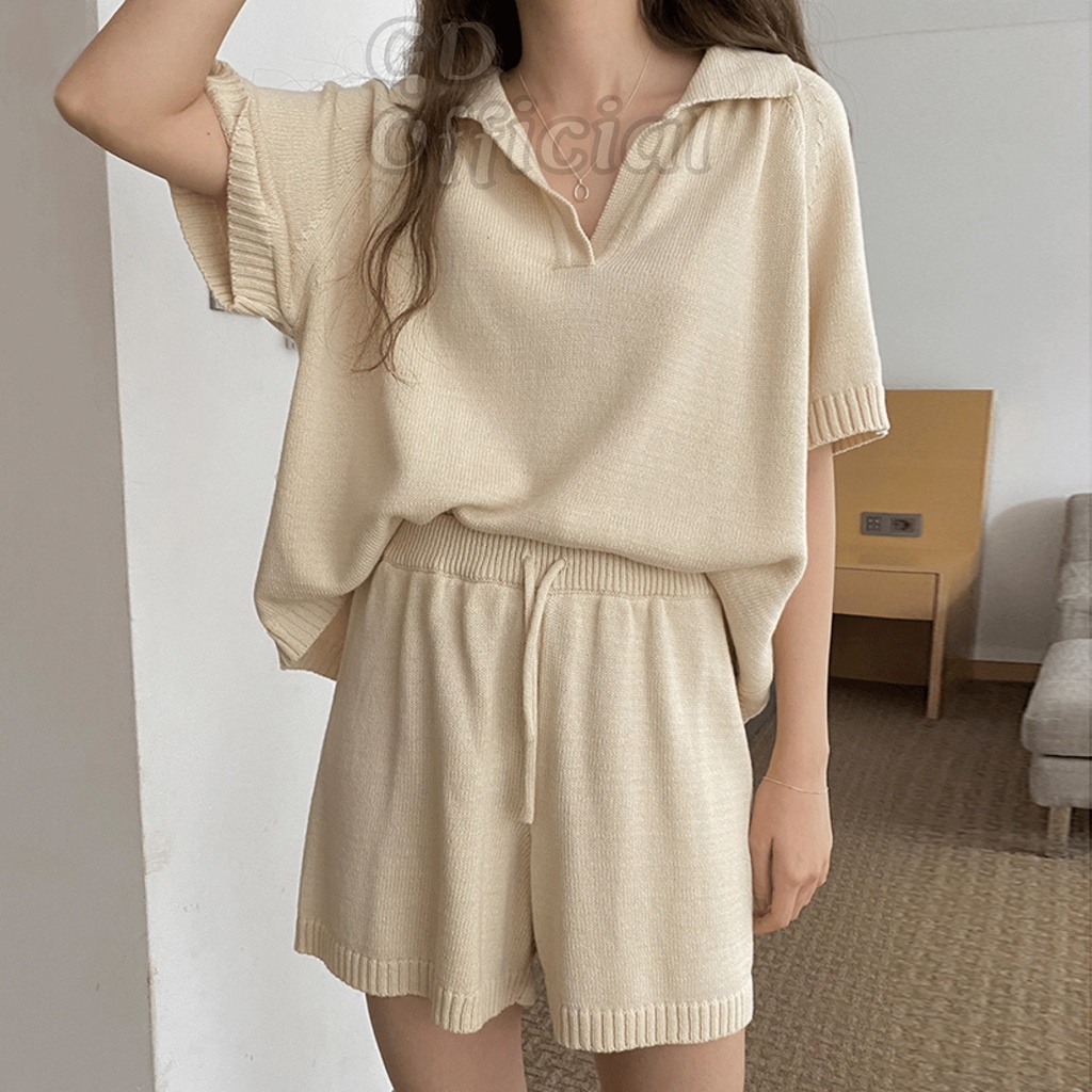 Giới thiệu N4|Set bộ thể thao, mặc nhà mùa hè gồm áo và quần short ngắn len tăm dáng rộng GD Official