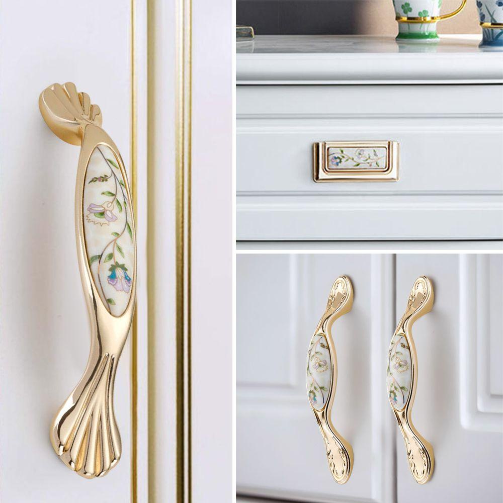 1 x Tay cầm với vít lắp) Tay nắm cửa Ngăn kéo Núm đồ nội thất Tay cầm Tủ kéo Tủ quần áo Bàn Tủ sách Phần cứng Gốm vàng Phong cách Châu Âu