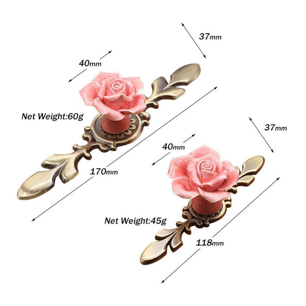 Chất liệu: Gốm + Đế hợp kim Phong cách: Vintage Hình dạng Núm: Hoa hồng Khoảng cách lỗ: Một lỗ Màu: hồng 1, hồng 2, trắng 1, trắng 2 Gói bao gồm: 1 x Tay nắm cửa + 1x Vít Kích thước: Nhỏ: 118mm (L) * 37mm (H) * 40mm (W) Lớn: 170mm (L) * 37mm (H) * 40mm (W) Chiều dài trục vít 2,5cm Đường kính 5mm Chuyển đổi: 1 cm = 0,39 inch / 1 inch = 2,54 cm