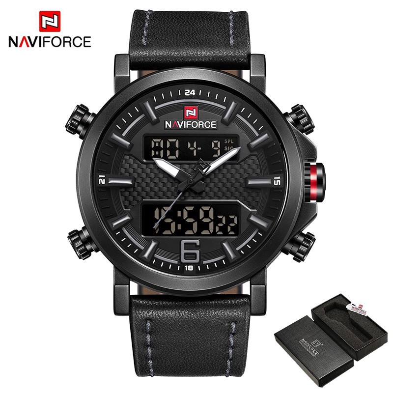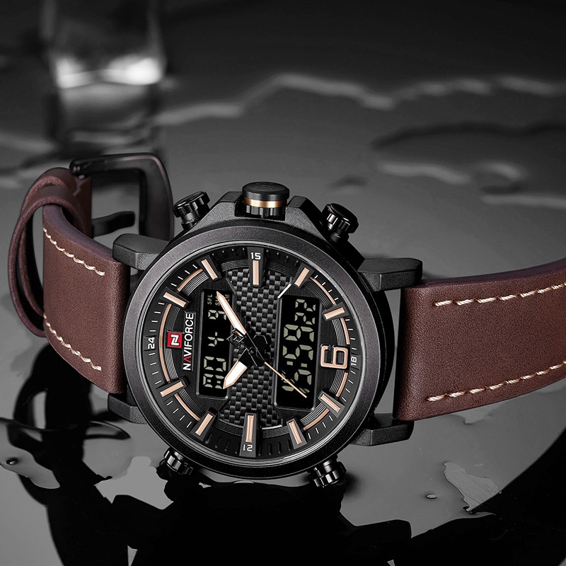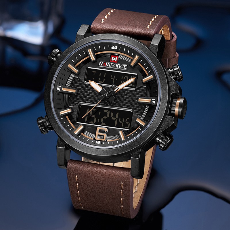 Giới thiệu NAVIFORCE NF9135 Đồng hồ analog dây da chống thấm nước LED thời trang nam