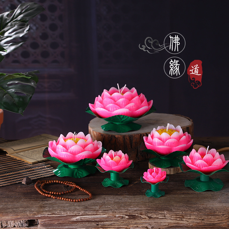 Nhà Cửa & Đời Sống > Trang trí nhà cửa > Nến và phụ kiện. > Nến thơm hình hoa sen có để, đèn cày trang trí bàn thờ hình đóa sen với đế hình cuống lá thanh nhã, màu sắc hài hòa