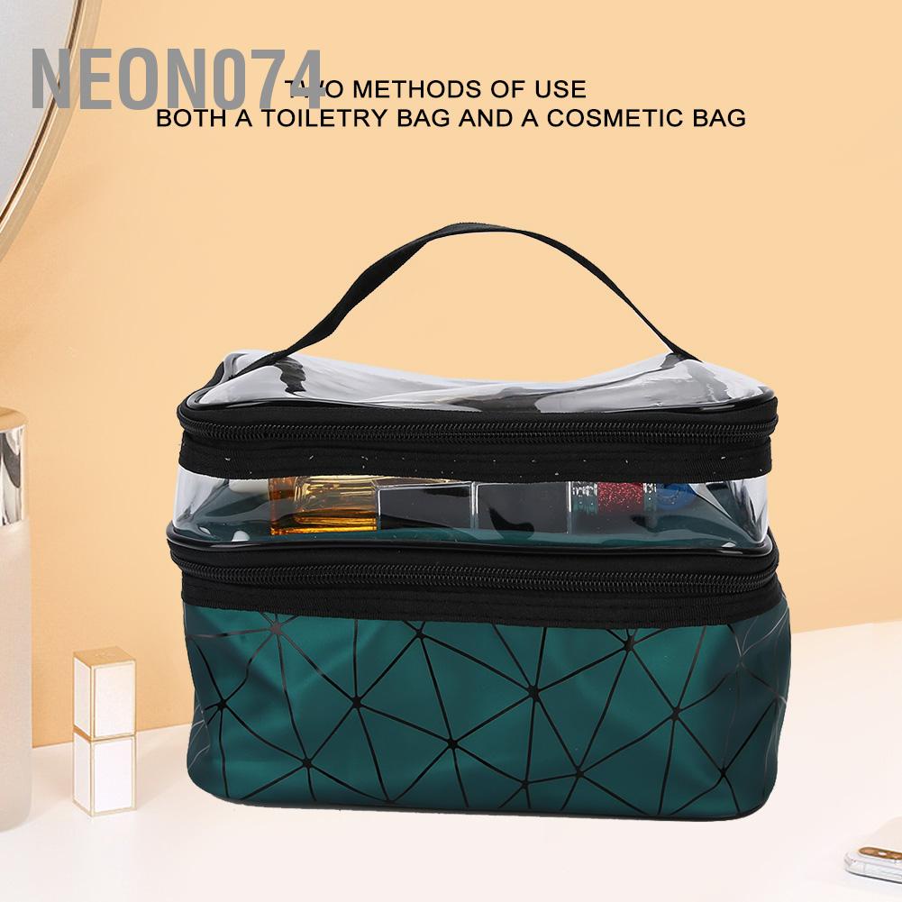 Giới thiệu Neon074 Hộp đựng mỹ phẩm đa chức năng Túi đồ trang điểm di động hai lớp Tổ lưu trữ vệ sinh cá nhân