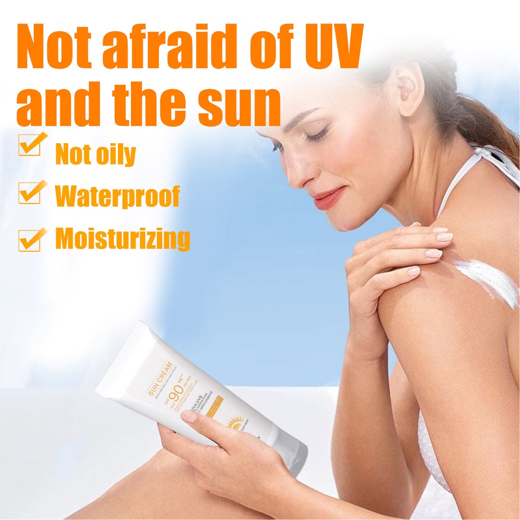 Feature: 1. Good Sun Protection Effect: High sun protection, resist ultraviolet radiation, isolates UVA and UVB damage, protect the skin, not afraid of hot sun and UV rays. 2. Waterproof Effect: Refreshing and not greasy, waterproof and long lasting effect, apply sunscreen before going out, help avoid all sunburn problems. 3. Safe And Mild: Smooth and delicate texture, easy to apply, safe ingredients, mild and non irritating, has no harm to skin, can be used with confidence. 4. Easy To Use: Take an appropriate amount of this product on the fingertips, apply to areas requiring sun protection, pat gently to make it fully absorbed. 5. Multiple Applicable Scenarios: 1.4oz net content, enough to meet your daily skin protection needs, compact and light weight, perfect for travel, outdoor activities, etc.