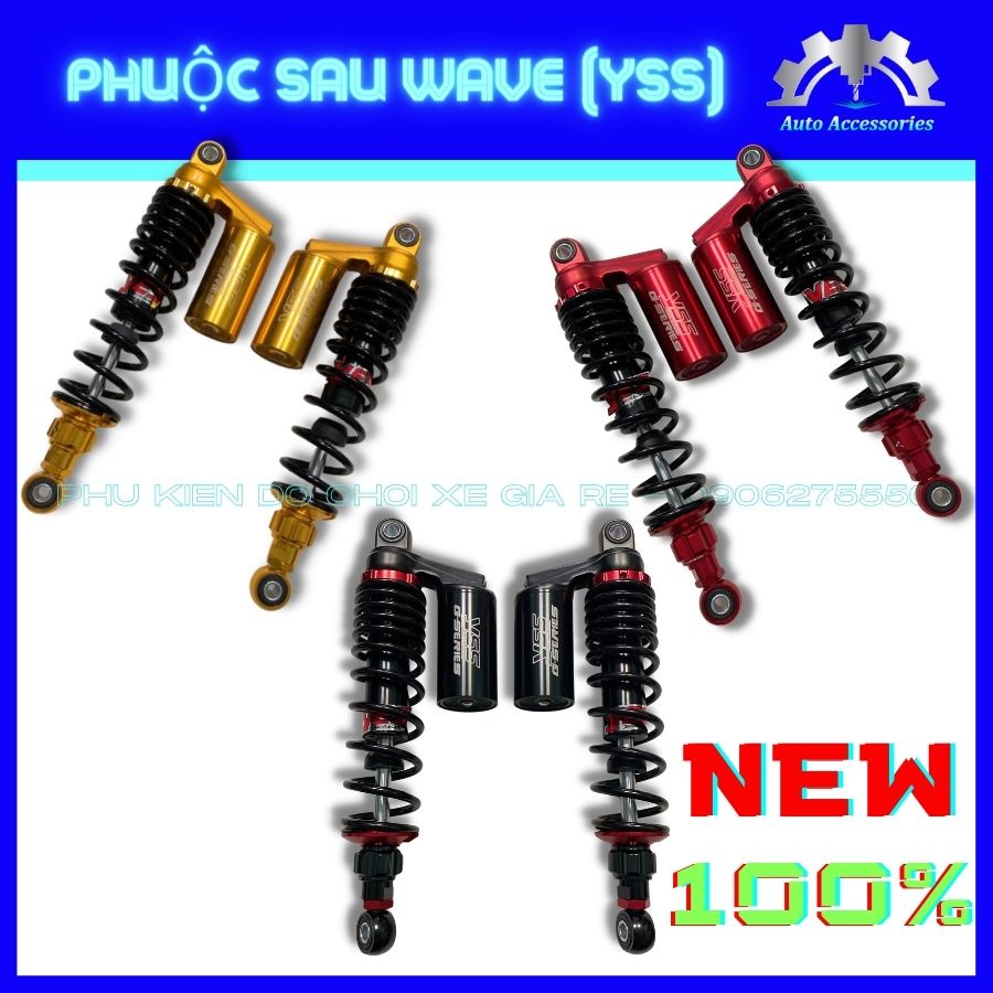 NEW 100% - Phuộc Sau YSS, Phuộc YSS gắn Sau xe WAVE, Phuộc Bình Dầu 3 màu, CÓ TĂNG CHỈNH, độ nhúng êm ái, chắc chắn