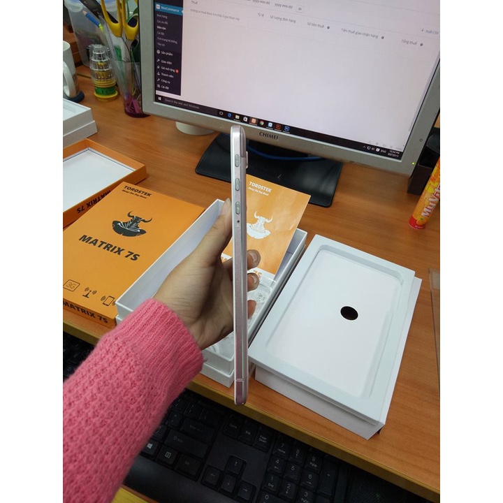 MÁY TÍNH BẢNG KIÊN ĐIỆN THOẠI 2 SIM 2 SÓNG TOROSTEK MATRIX 7S – Máy tính bảng kiên điện thoại 2 sim 2 sóng Matrix 7S – Ứng dụng hệ điều hành Android 4.4 thông minh. – CPU 1.3 GHz Quad core Processor. – Ram 1GB, 2 Sim 2 sóng nghe gọi thoải mái, – Camera 2MP/5MP, Pin: 2500mAh. – KÍCH THƯỚC: 226 x 145 x 52 mm – Hỗ trợ wifi, 3G, để bạn thoải mái nghe gọi, xem phim, nghe nhạc, chơi game, học tập… – Màn hình cảm ứng 7inch, hỗ trợ tính năng văn phòng và cả Market hay Google Play… – Màu sắc: đen, vàng hồng vừa thời trang tinh tế vừa mỏng và sang trọng. – Bộ nhớ trong của máy: 8 GB.Và máy hỗ trợ thêm thẻ nhớ ngoài lên tới 32GB tiện cho việc nâng cấp cho bộ nhớ máy . – Máy gồm hộp sách, sạc, miếng dán màn hình, Bao da, cáp chuyển đổi USB – Sim 3G: Mobi & Vina