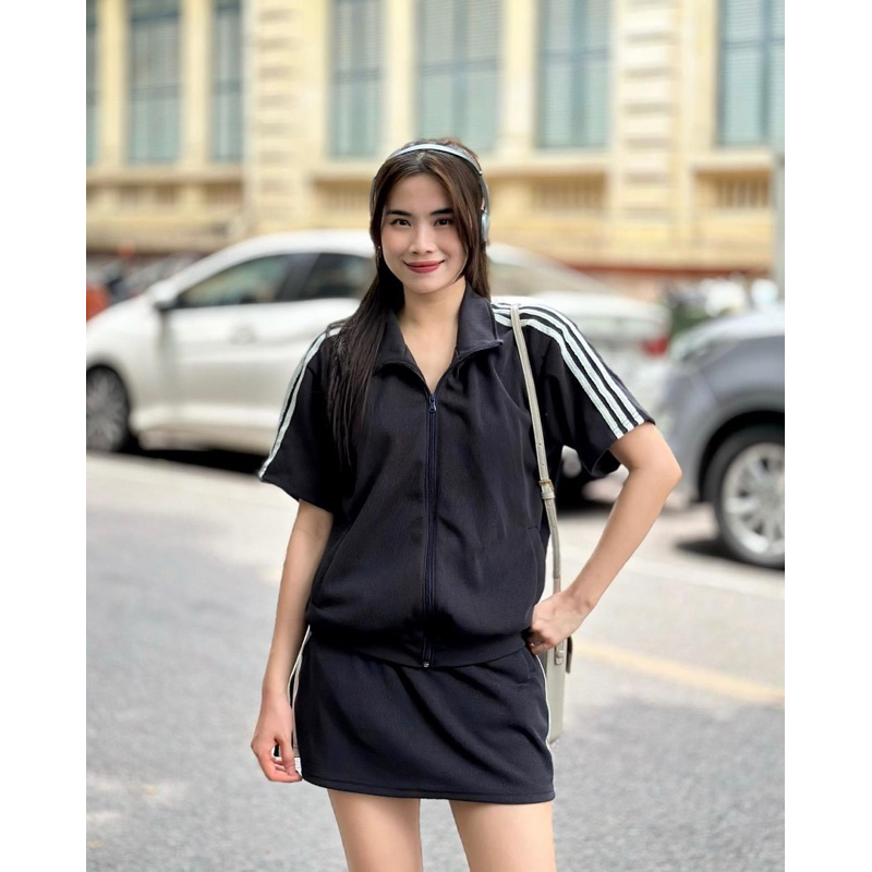 Giới thiệu [NEW]SET ÁO POLO THUN GÂN KHOÁ KÉO VIỀN SỌC MIX CHÂN VÁY CHỮ A siêu xinh