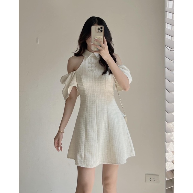 Giới thiệu [NEW]VÁY DẠ TWEET CUTOUT RỚT VAI “LUCIE DRESS” KÈM TAG NƠ tiểu thư