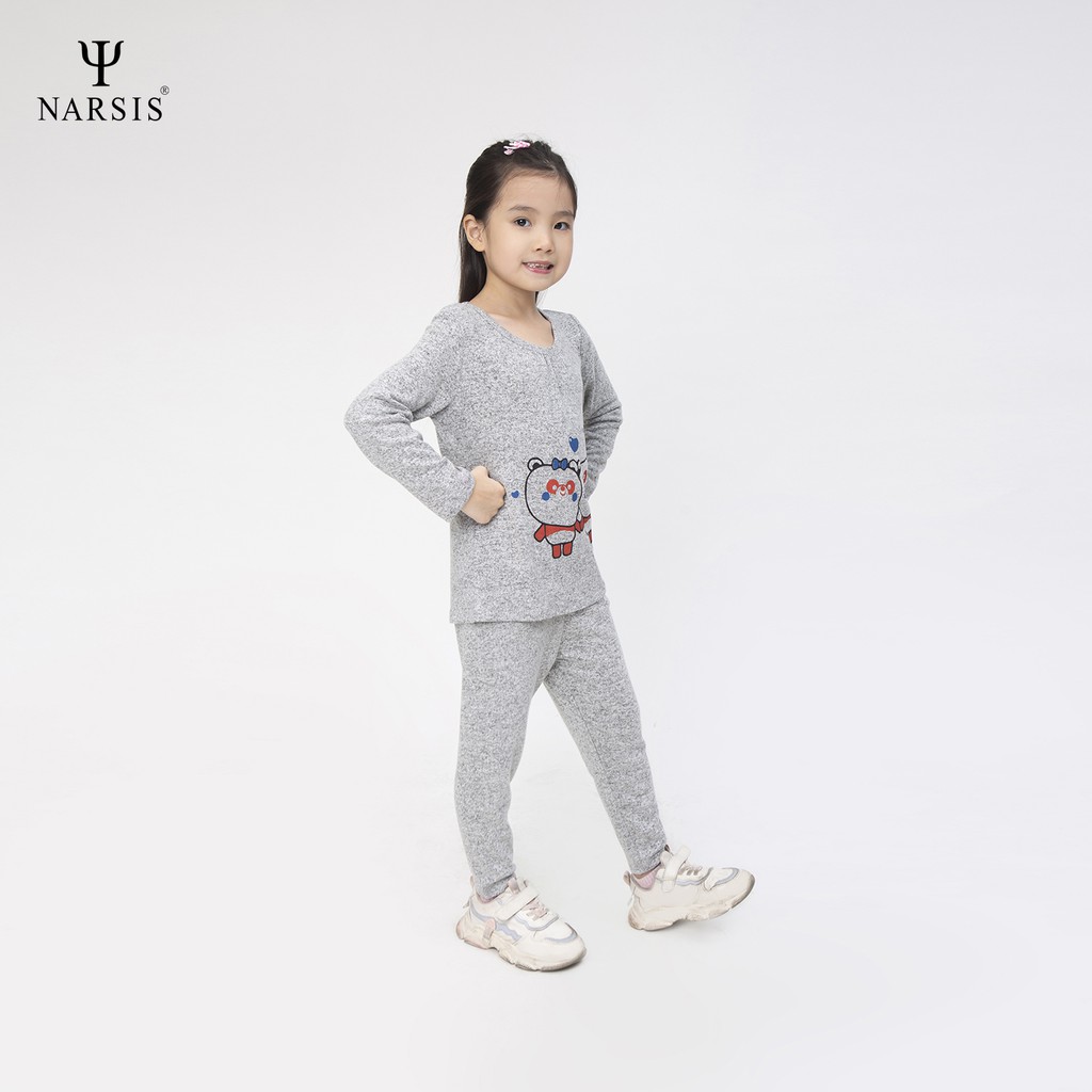 📍Tên sản phẩm: Bộ đồ đông bé gái Narsis KM0044 len màu ghi