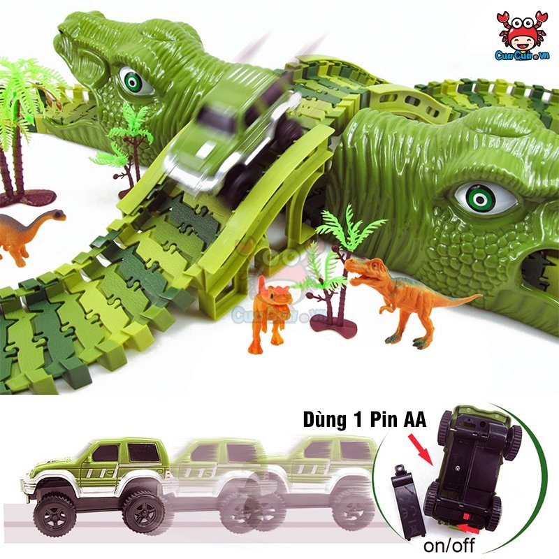 Đường Đua Ô tô đồ chơi khủng long 168 chi tiết cho bé lắp ráp đường đua thông minh, xe đồ chơi cho bé trai