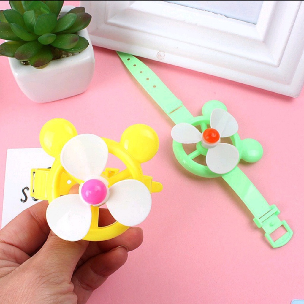 - Cánh xoay gió thiết kế kiểu đồng hồ xinh xắn, chỉ cần thổi nhẹ cánh quạt sẽ quay - Là phụ kiện nhỏ xinh cho bé, thích hợp khi chơi ngoài trời, đi dã ngoại,... - Chất liệu nhựa mềm, được bo tròn các cạnh đeo không bị đau tay. - Màu sắc: 4 màu hồng, xanh dương, xanh lá, vàng