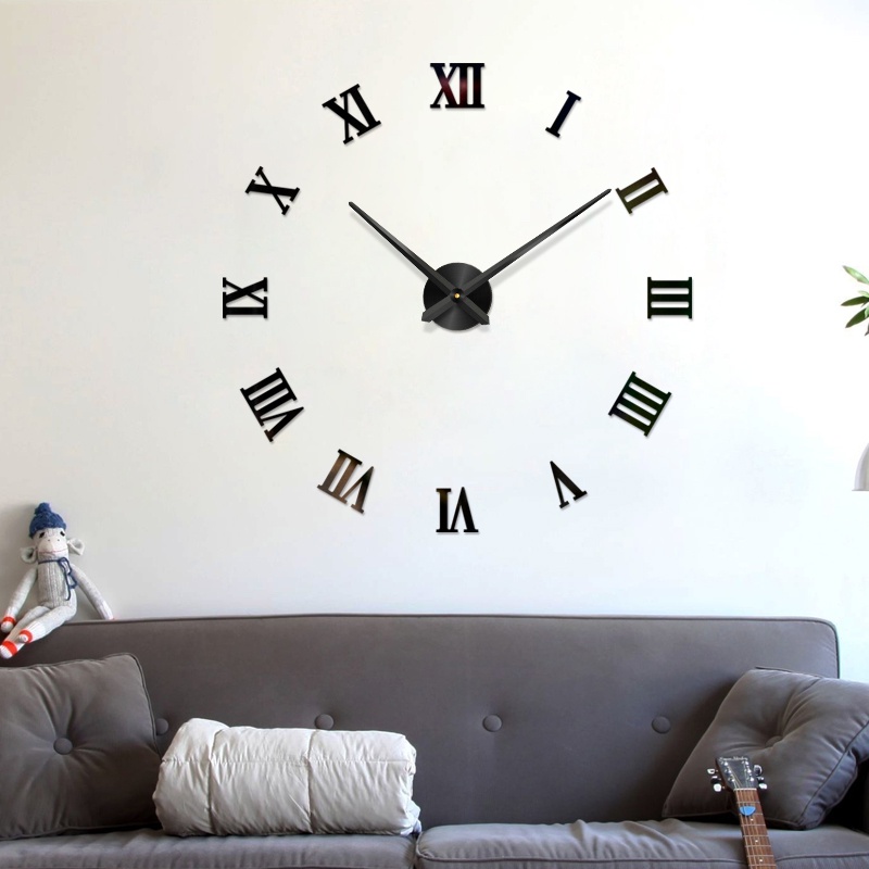 3D DIY Big Roman Number Acrylic Modern Mirror Borderless Wall Clock Sticker Set Decoration