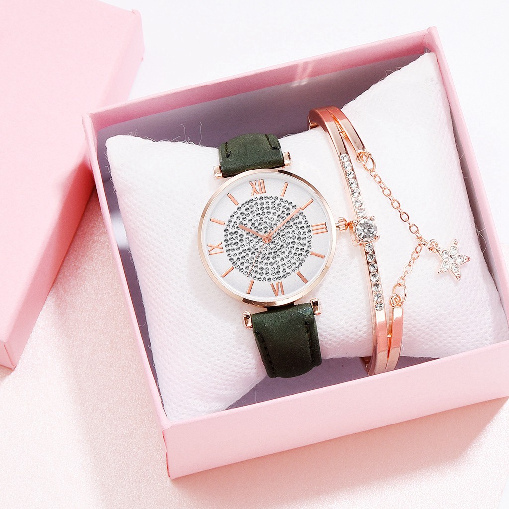 Giới thiệu Bộ Đồng Hồ Đeo Tay Dây Da Pu Thời Trang Cho Nữ