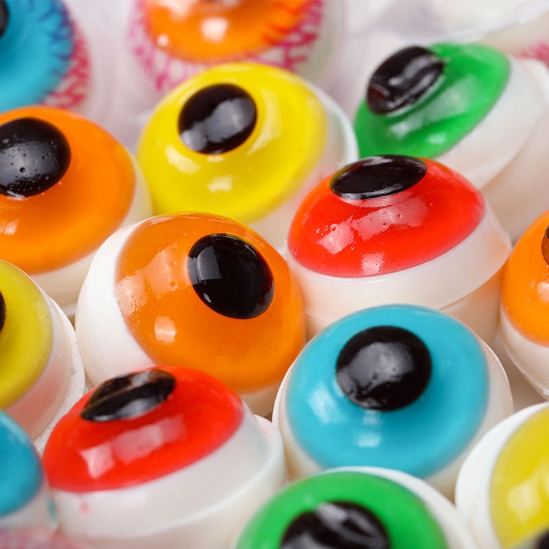 - Kẹo con mắt có hình các con mắt kinh dị to đùng, long lanh, đảo qua đảo lại vô cùng sống động.