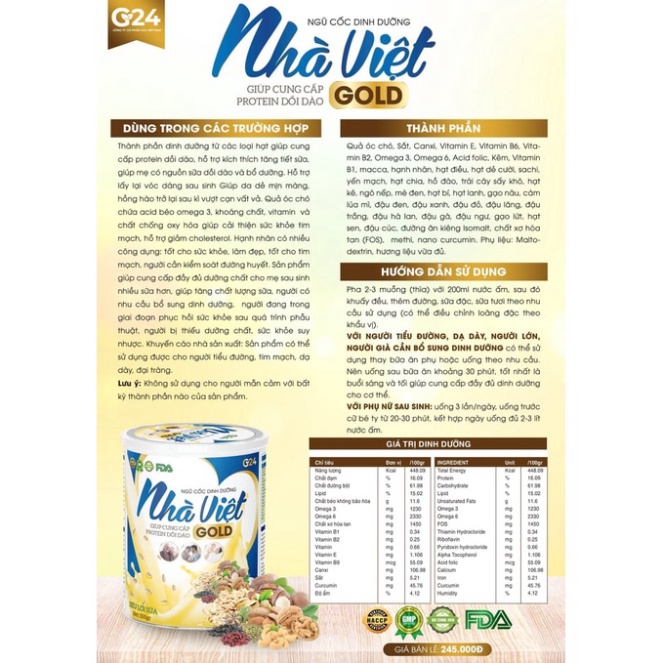 Các mẹ dự sinh mổ thì lại càng cần dùng trước khi sinh và sau khi sinh để kích sữa về nhanh hơn. Sinh mổ thì tuyến sữa thường không mạnh mẽ như sinh thường nên phần lớn các mẹ sinh mổ đều về sữa chậm và sữa không dồi dào như các mẹ sinh thường. Mẹ sau sinh cần kiên trì sử dụng bột ngũ cốc lợi sữa liên tục và đều đặn để có hiệu quả tốt nhất. 1./ Đối với các mẹ đang bầu : Nếu mẹ không uống được sữa bầu (nhiều mẹ sợ mùi sữa) thì nên dùng ngũ cốc thay cho sữa bầu 2./ Đối với mẹ sau sinh : Cần bổ sung dùng ngay ngũ cốc lợi sữa để sữa nhanh về, sau 1-2 ngày là cần có sữa tự nhiên cho con bú rồi nên các mẹ chủ động ăn uống và bổ sung ngũ cốc lợi sữa ngay , nên kết hợp ăn uống đủ chất ,uống đủ 3 lít nước ấm một ngày để luôn đảm bảo đủ sữa 3./ Đối với các mẹ muốn kích lợi sữa và tăng cân : Các mẹ uống nóng và pha kèm sữa ông thọ tỷ lệ nhiều sữa ông thọ một chút là sẽ tăng cân cho mẹ dần dần và vẫn lợi sữa cho con nhé! Nhớ là uống sau khi ăn uống ngày 3-4 bữa 4./ Đối với người gầy: ngày 3 ly với sữa ông thọ sau bữa ăn 30phút 5./Đối người béo phì ,thừa cân: sử dụng sau bữa ăn 30phút uống nguyên vị Cách sử dụng: Pha 2 thìa bột với khoảng 50ml nước nguội, nguấy đều để tránh vón cục, sau đó thêm 150ml nước sôi, thêm chút đường, sữa đặc,sữa tươi tùy ý và uống nóng.(cách pha trên chỉ gợi ý có thể điều chỉnh đặc loãng theo khẩu vị) * SỬ DỤNG TRONG 45 NGÀY SAU KHI MỞ NẮP * XUẤT XỨ : VIỆT NAM Sản phẩm này không phải là thuốc và không có tác dụng thay thế thuốc chữa bệnh!