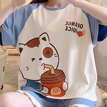 Giới thiệu bộ đồ ngủ cotton in hình mèo dễ thương,thấm hút mồ hôi tốt, Bộ mặc nhà mềm mát