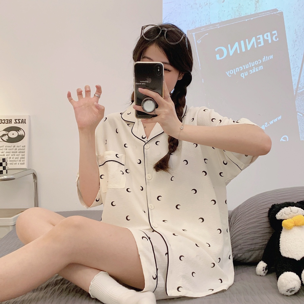 Giới thiệu Bộ Đồ Ngủ Cotton Tay Ngắn Phồng Màu Trơn Thời Trang Dành Cho Nữ