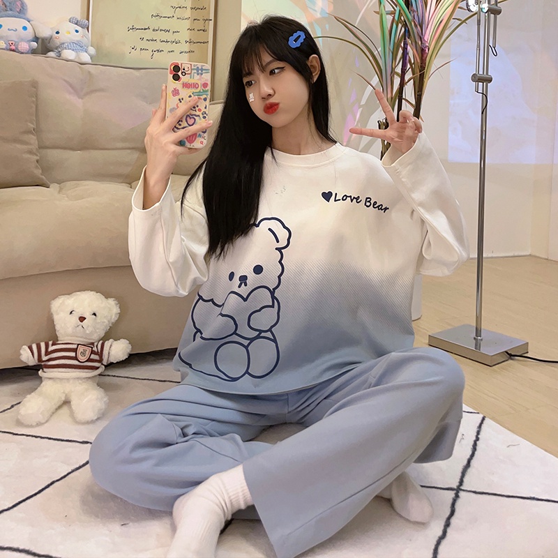 Số mảnh - 2 mảnh Ngữ pháp vải chính — 200g trở xuống Độ dày - thông thường Loại cổ áo - cổ thuyền viên Chiều dài tay áo ' dài tay Mùa xuân Giới tính phù hợp - nữ Phong cách mặc nhà sweet