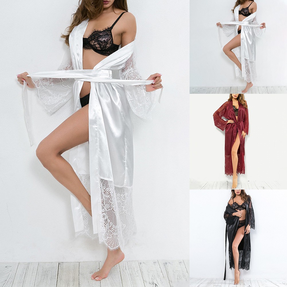 Giới thiệu Đồ ngủ Dáng Dài Vải Satin Phối Ren Thời Trang Quyến Rũ Cho Nữ KK0525