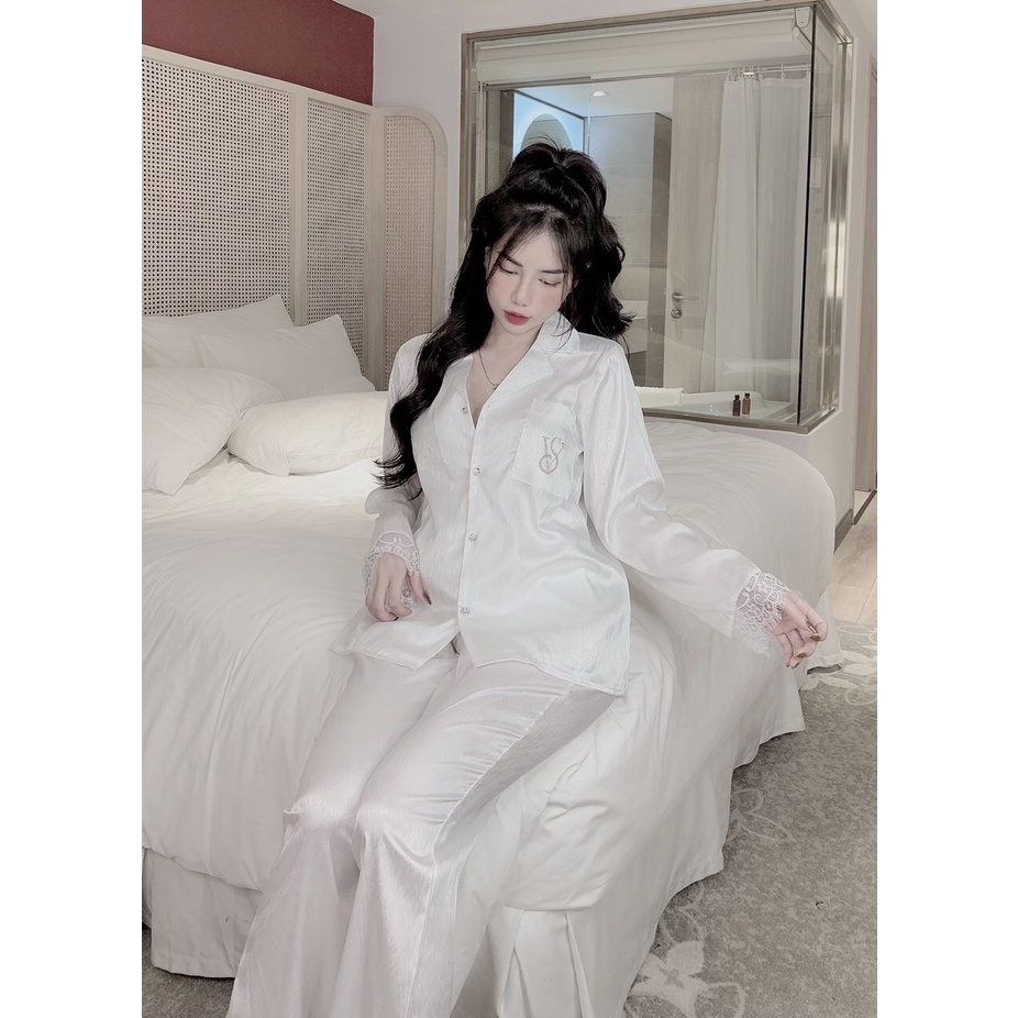 Giới thiệu Đồ Ngủ, Đồ Bộ Nữ Tay Dài VS Đính Đá Lụa Xước - Pyjama Nữ Freesize