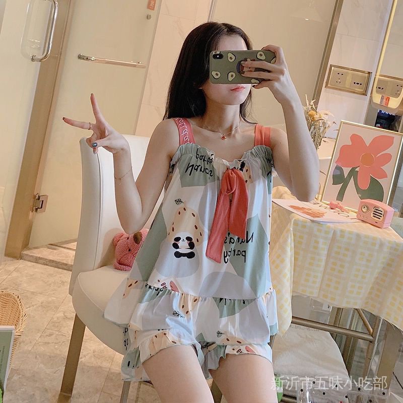 Tên vải thông dụng: Polyester Chất liệu chính vải: Polyester (Sợi Polyester) Nội dung thành phần: 91% (Bao gồm) -95% (Bao gồm) Độ dày: phần mỏng Dành cho: Bé gái Phong cách mặc nhà: Ngọt ngào Chiều dài tay áo: Không tay Độ tuổi sử dụng: Thanh niên (18-25 tuổi) Chi tiết kiểu quần áo: in ấn Loại cổ áo: Dây treo Chiều dài quần: Quần short Bộ đồ ngủ cho phụ nữ Mùa hè mới Bộ đồ gợi cảm Bộ đồ gợi cảm Học sinh ngọt ngào có thể mặc Thường xuyên Mang thai Phụ nữ Quần áo mặc nhà Mùa hè