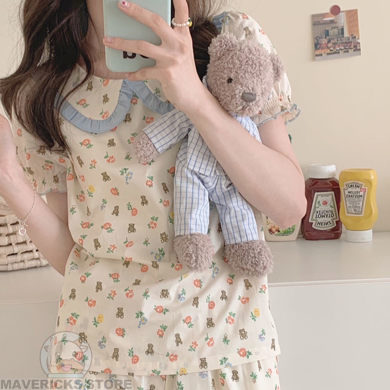 Giới thiệu Bộ Đồ Ngủ In Hình Gấu Dễ Thương Phong Cách Hàn Quốc Thời Trang Mùa Hè Cho Nữ