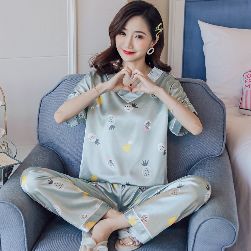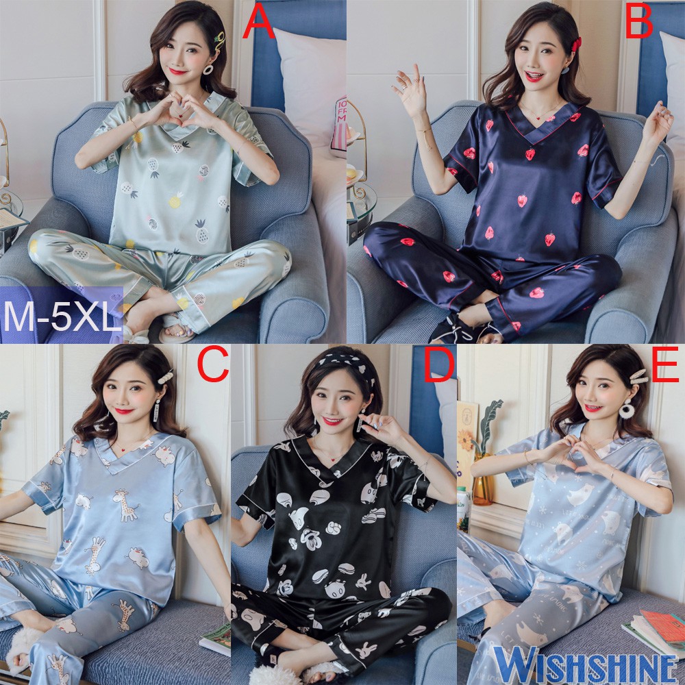 Giới thiệu Bộ Đồ Ngủ Lụa Satin Tay Ngắn Plus Size M-5XL Dành Cho Nữ
