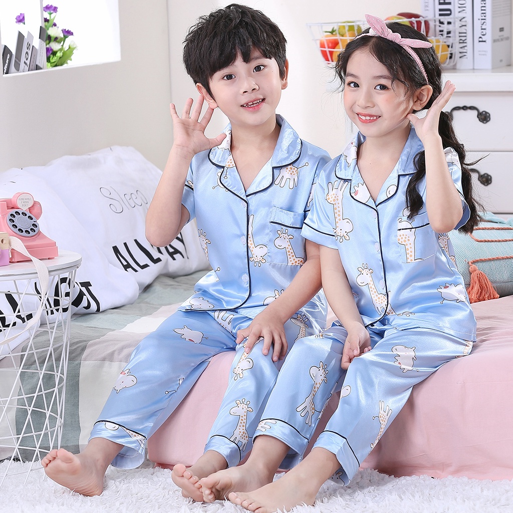 Đặc tính : 1) Thích hợp cho: Trẻ em; 2) Chất liệu chính: Silk Stain; 3) Mô hình: In; 4) Phong cách: Dễ thương / Giản dị; 5) Quần placket: Dây cao su; 6) Gói bao gồm: 1 bộ X đồ ngủ (1 cái sơ mi + 1 cái quần);