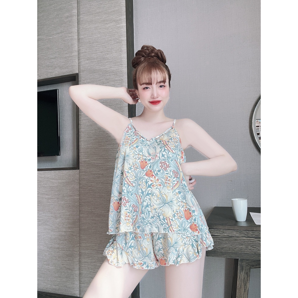 Giới thiệu Đồ Ngủ Nữ Sexy Chất Vải Latin Mềm Mịn Buột Dây Quần Viền Bèo Min Underwear 135890
