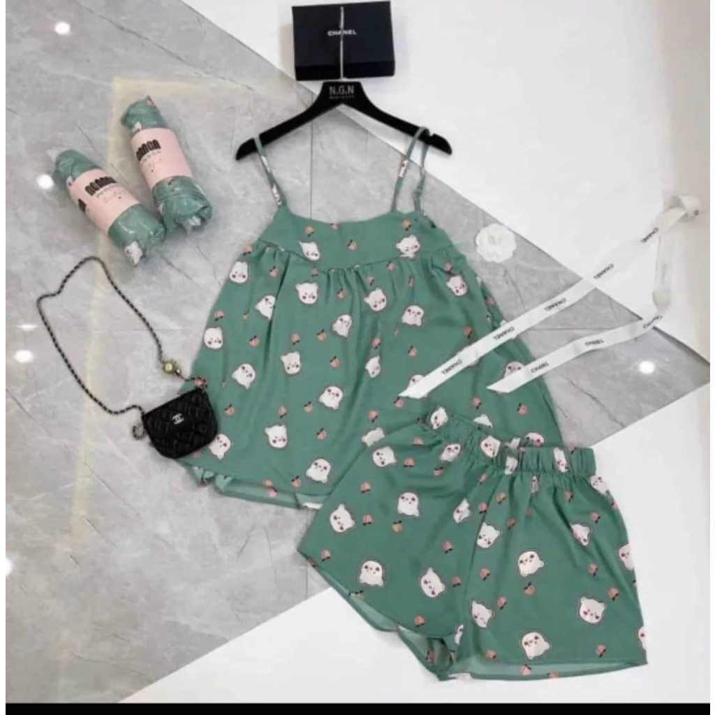 Đồ ngủ pijama bộ ngủ bò sữa nữ cộc tay mùa hè, pijama lụa kate dễ thương,Bộ Đồ Ngủ Cute Cho NữGiá NPTX