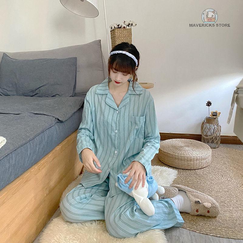 Giới thiệu Bộ đồ ngủ pijama dài tay họa tiết kẻ sọc mới