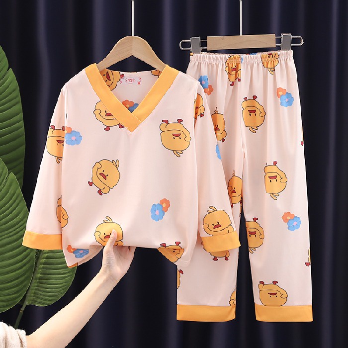 Giới thiệu Bộ Đồ Ngủ Tay Dài Cổ Chữ V Chất Liệu Cotton In Họa Tiết Hoạt Hình Xinh Xắn Cho Bé