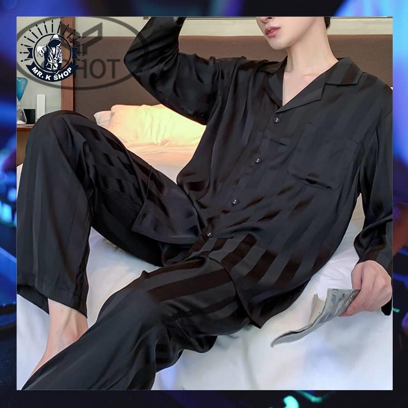 Giới thiệu Bộ Đồ Ngủ Tay Dài Vải Lụa Mỏng Cỡ Lớn Thời Trang Xuân Thu Cho Nam