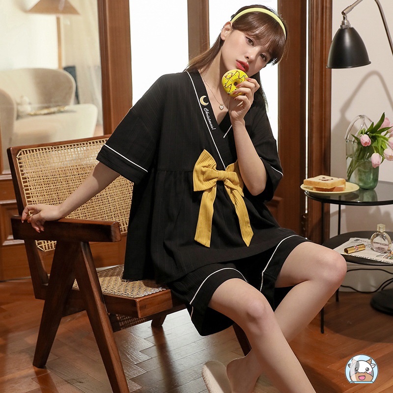 Giới thiệu Bộ Đồ Ngủ Tay Ngắn Chất cotton Phong Cách kimono Nhật Bản Dễ Thương Thời Trang Cho Nữ