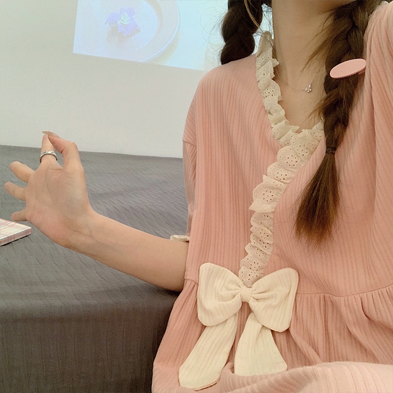 Kịch bản áp dụng : Nhà bình thường Thích hợp cho 'Thanh niên Trọng lượng vải chính - 200g trở xuống Loại cổ áo 'Cổ chữ V Chiều dài tay áo - tay áo ngắn Chiều dài váy × Chiều dài trung bình Mùa áp dụng - mùa hè Phong cách mặc nhà sweet