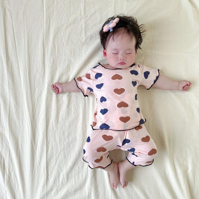 Giới thiệu Bộ Đồ Ngủ Tay Ngắn In Họa Tiết Trái Tim Phong Cách Hàn Quốc Thời Trang Cho Bé Gái 0-6 Tuổi