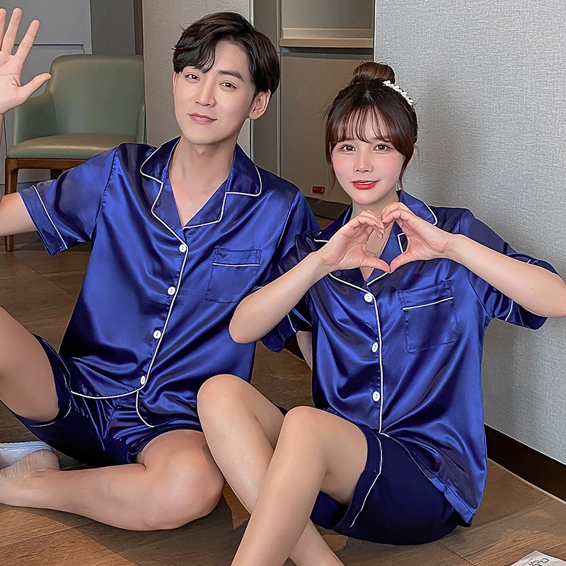 Giới thiệu Bộ Đồ Ngủ Vải Lụa Satin Tay Ngắn Plus Size M-5XL Thời Trang Hàn Quốc Cho Nam Và Nữ