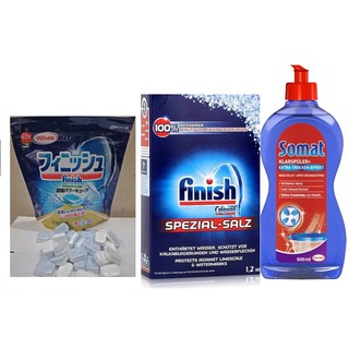 Bộ viên rửa bát finish 60 viên Muối rửa bát Finish1,2kg và nước làm bóng Somat 500ml